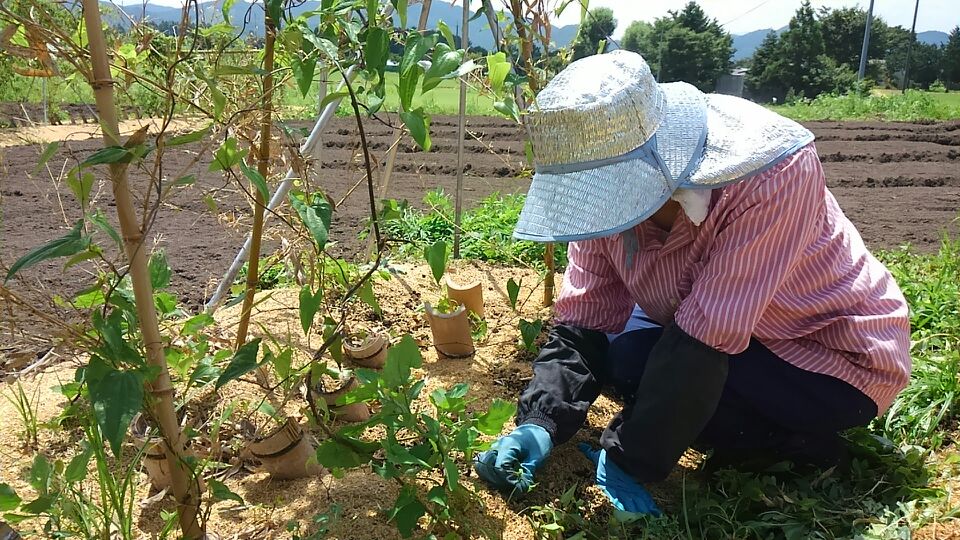 こちらは自然薯の草取り風景です(^^) 太~いツルがグングン伸びています♪ 収穫が楽しみだぁ(*≧▽≦*) (しかしこの数日後、悲劇が待っておりました・・・(oдolll) )