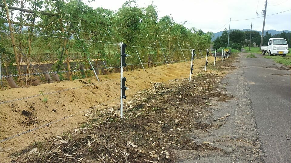 すぐさま電柵を張りめぐらせ、イノシシ対策を致しました!!!!!