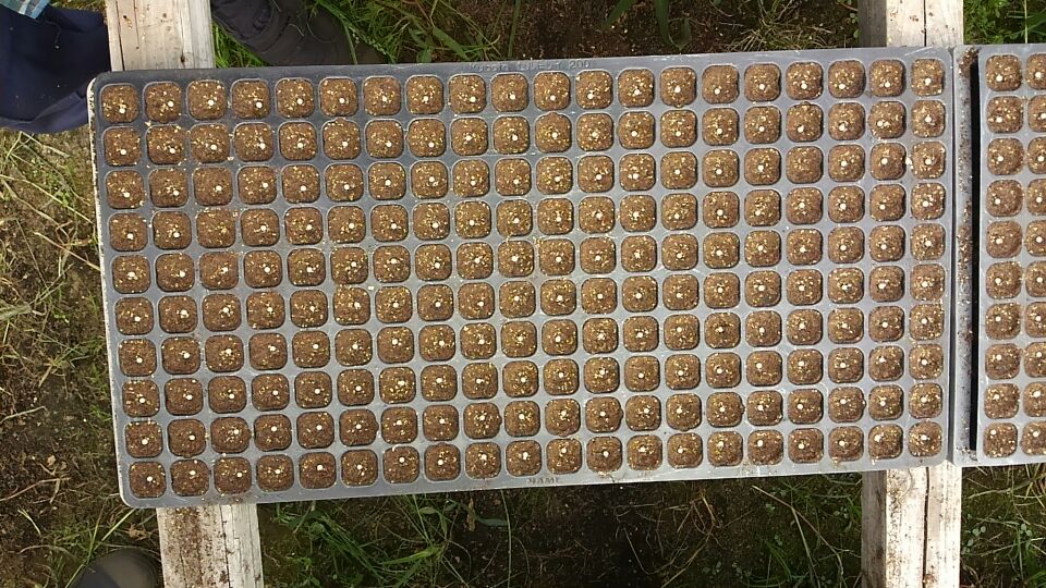 越冬キャベツの種まきの時期になり、先日、次女&三女がせっせと種まきをしました!