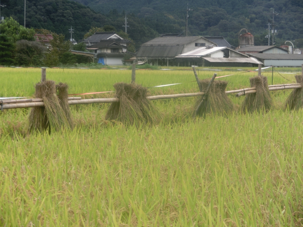 雨の合間にをぬって稲刈りを始めました。