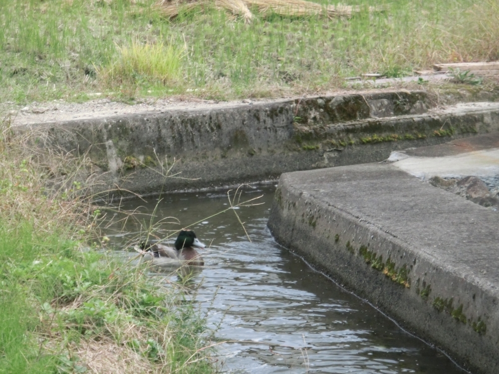 狭い井手の中でカモが泳いでいました。すぐ近くの旭川にはたくさんいますが、井手で泳いでいるのを見るのは初めて。