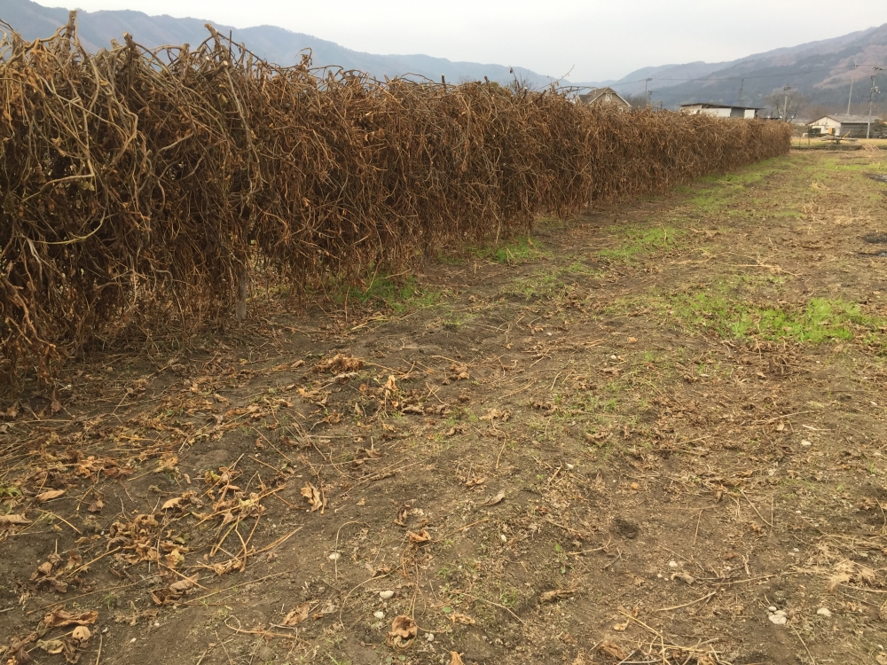 この落ち葉とカヤを来春からぶどうの木々の周りに敷き詰めます。