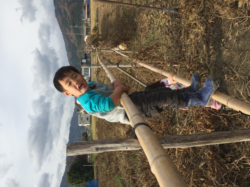 また、黒大豆も栽培しており、はで掛けを行いました。
