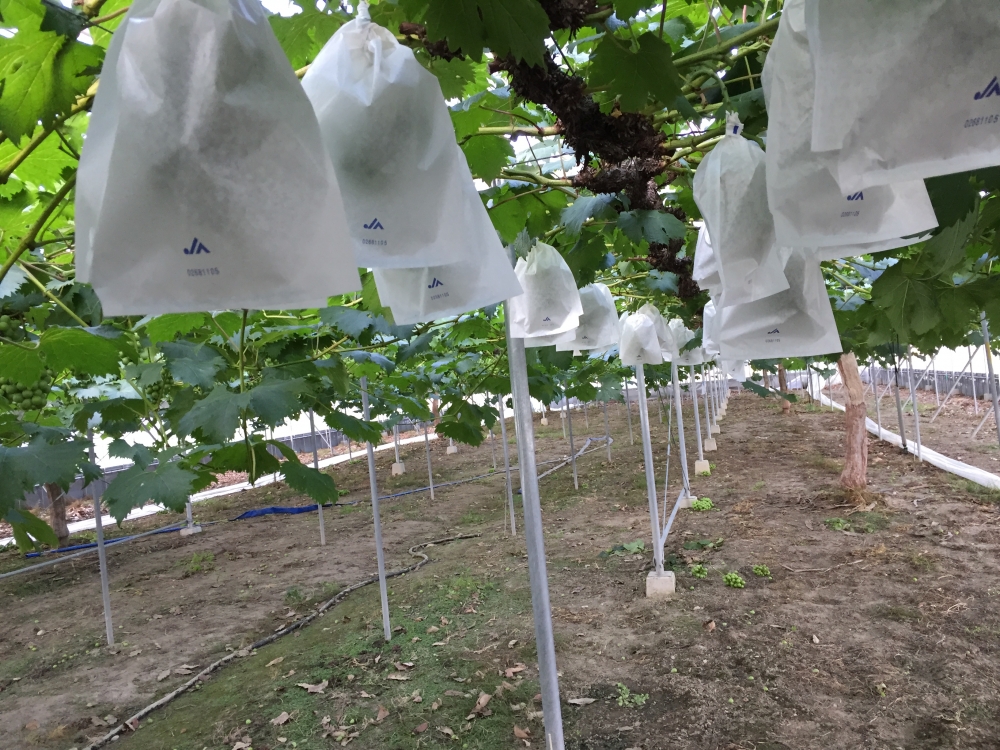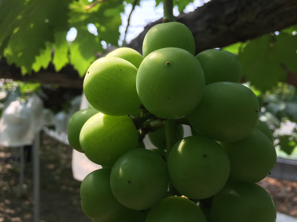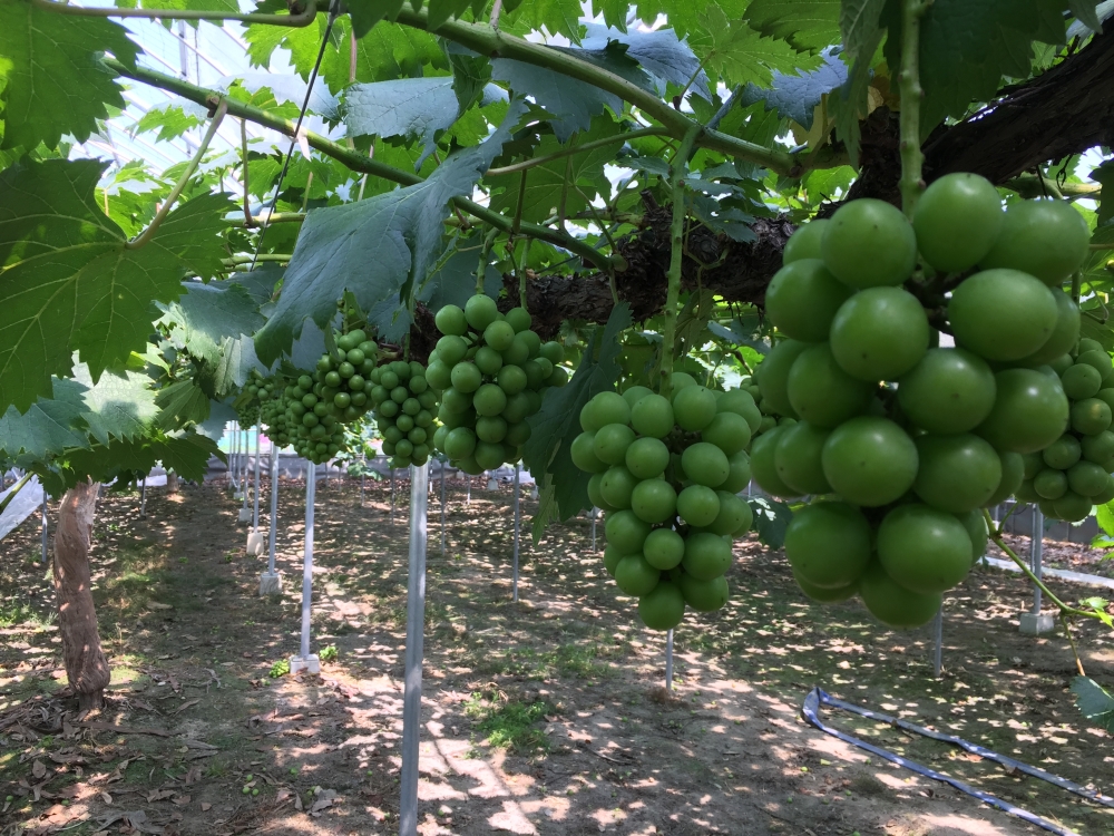 ハウス栽培のピオーネは日に日に大きくなり、順調に育っています。
