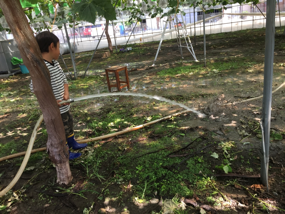 水やりを手伝いました。
