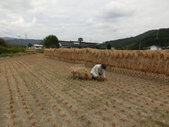 天日干しをして、よりおいしいお米になるように手をかけています。