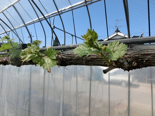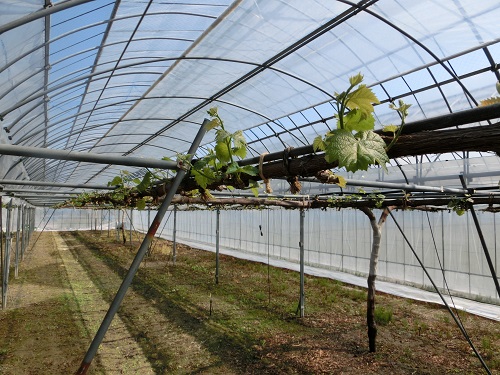 ハウスのブドウの葉っぱが元気に出ています!