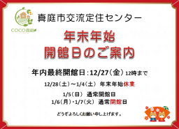 【年末年始】お正月前後のセンター営業日について【冬季休業】