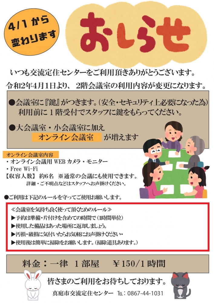 令和2年4月1日より、2階会議室の利用内容が変更になります。