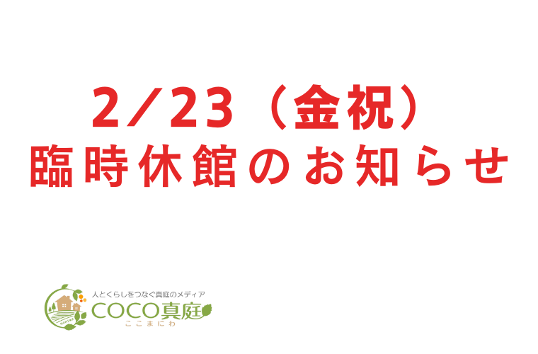 2/23(金祝)は、地域間交流イベント「真庭まちづくり交流会」開催のため、臨時休館いたします。