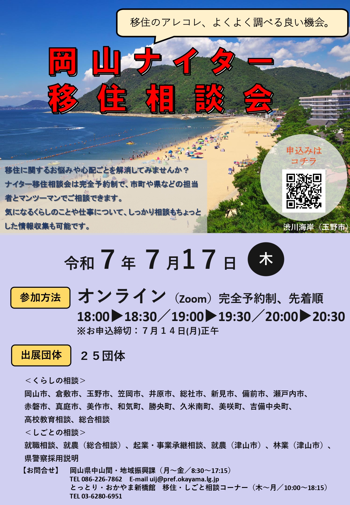 「岡山ナイター移住相談会」は、毎月第3木曜日の夜にオンラインで開催されている移住相談会です。