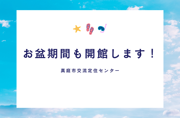真庭市交流定住センターは、お盆期間中も、通常通り開館いたします。