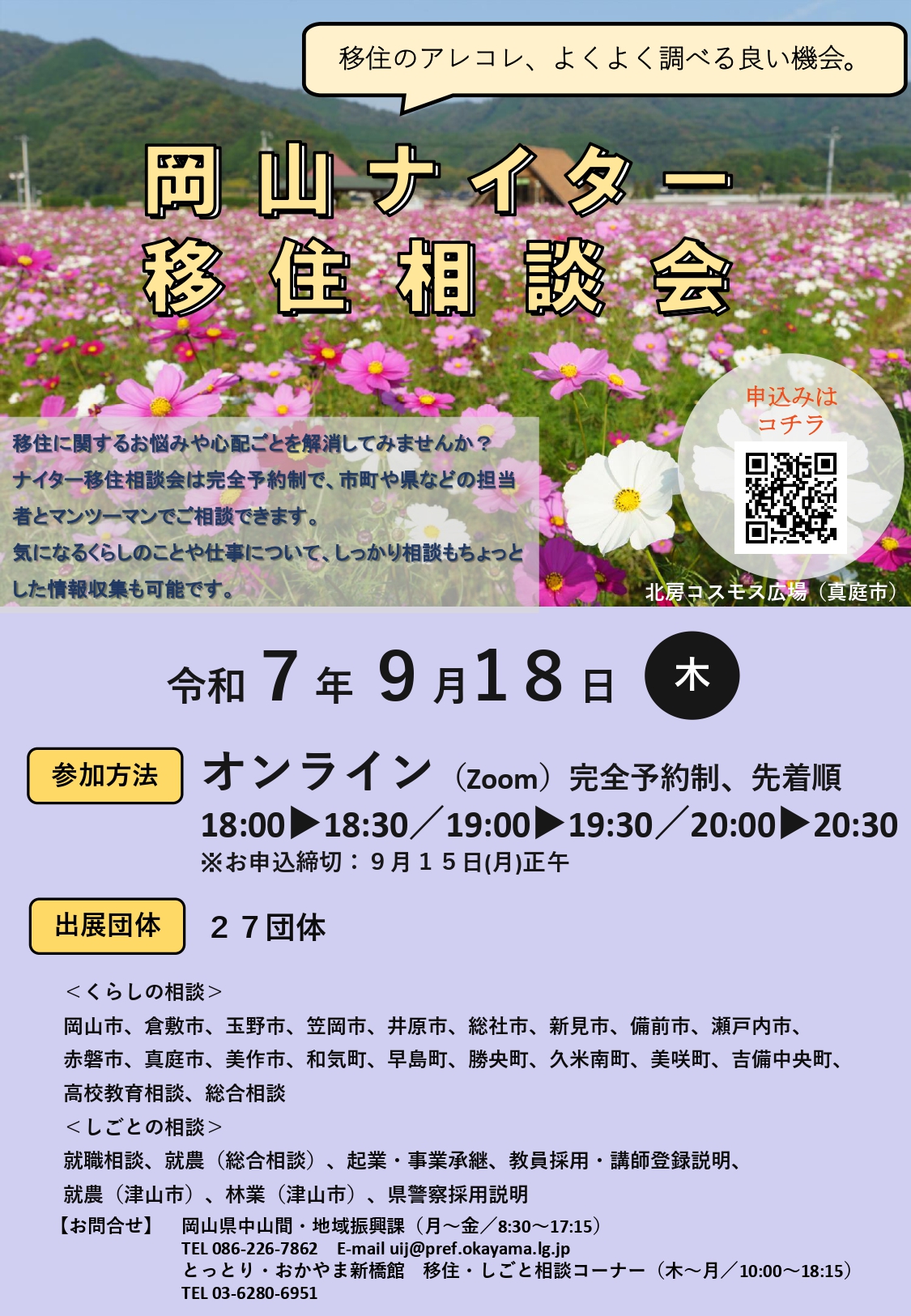 毎月恒例の、夜間に開催されるオンライン移住相談会のお知らせです。