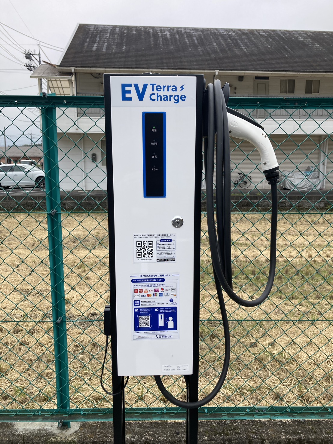 電気自動車(EV)用の充電スタンドを2機設置いたしました。