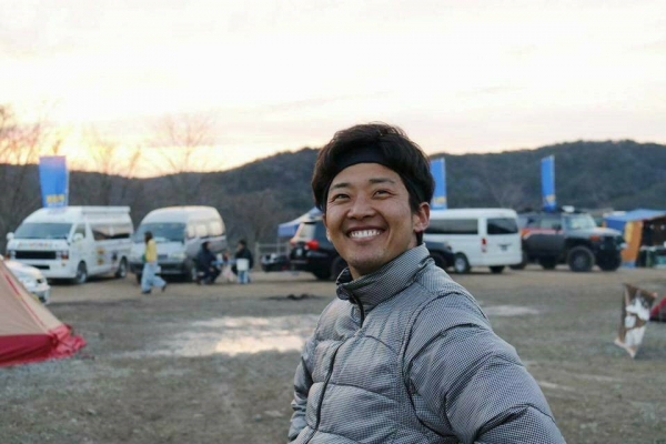(北房アウトドアベースで運営したキャンプフェスは大盛況でした(写真前列中央))笑顔の素敵な岩本さんの周りには色々な人の繋がりがあり、イベントに参加した方々も笑顔が絶えないようでした。