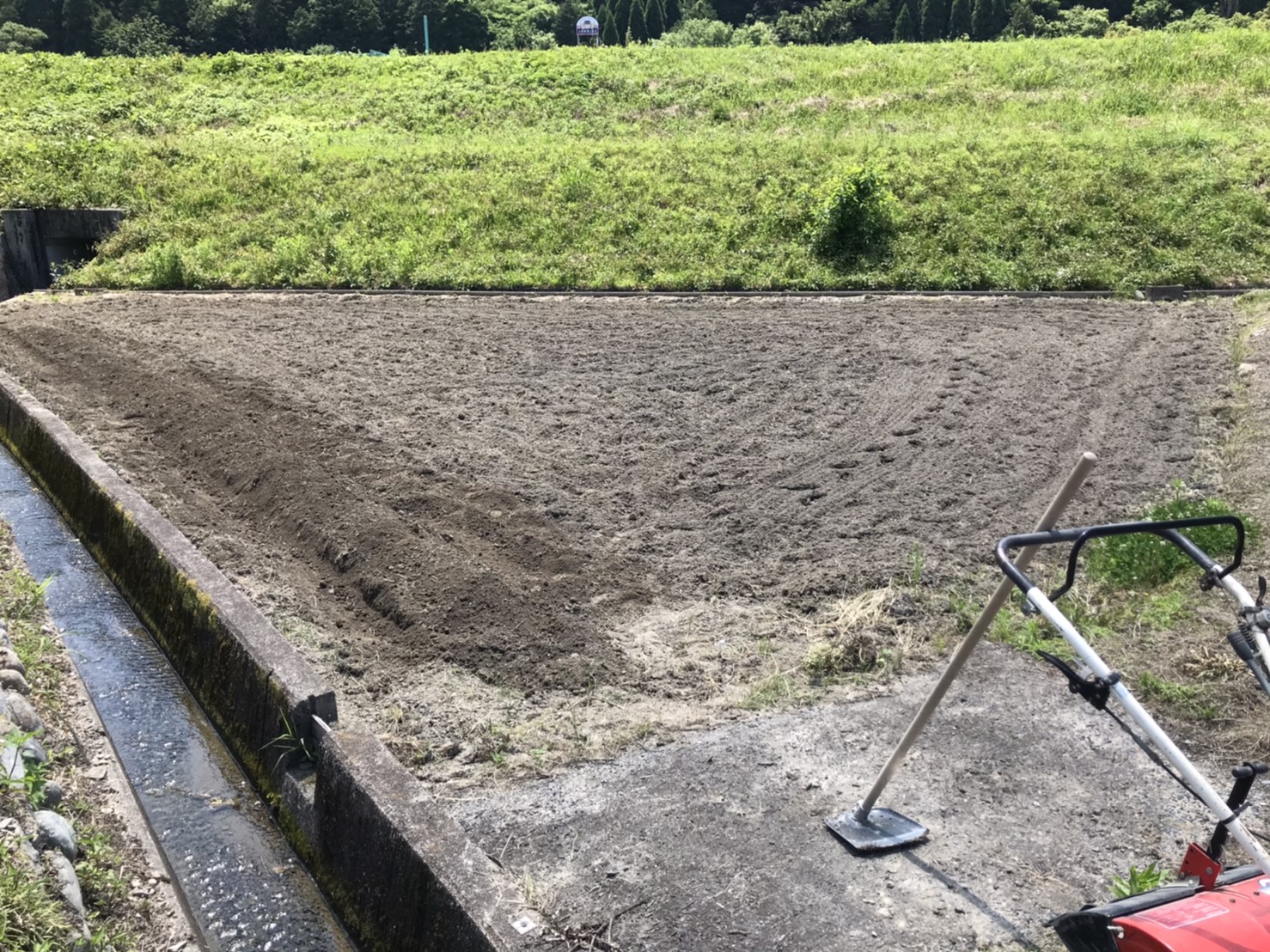 わっせわっせと管理機で耕し、4徳ジョレンで畝を立てること8つ