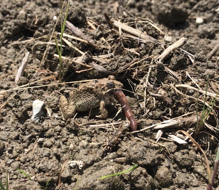 時折、カエルがミミズを捕食するシーンをずっと眺める。(疲労回復)