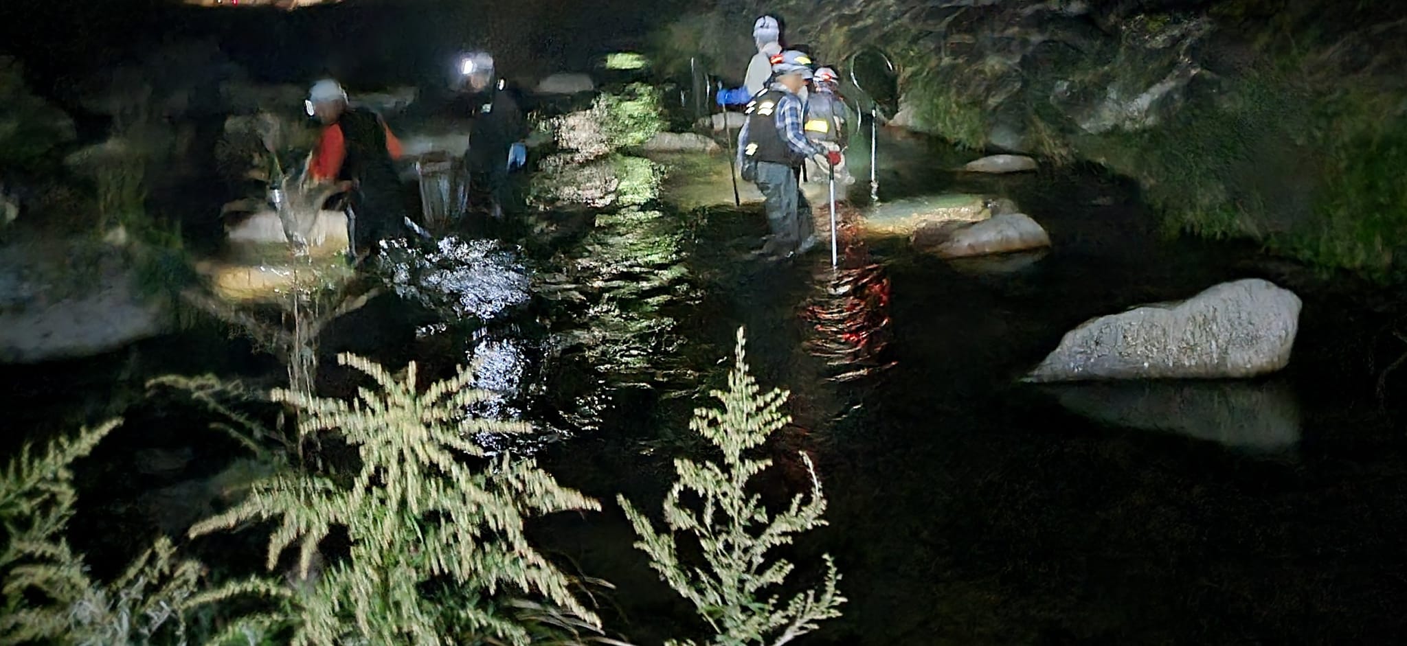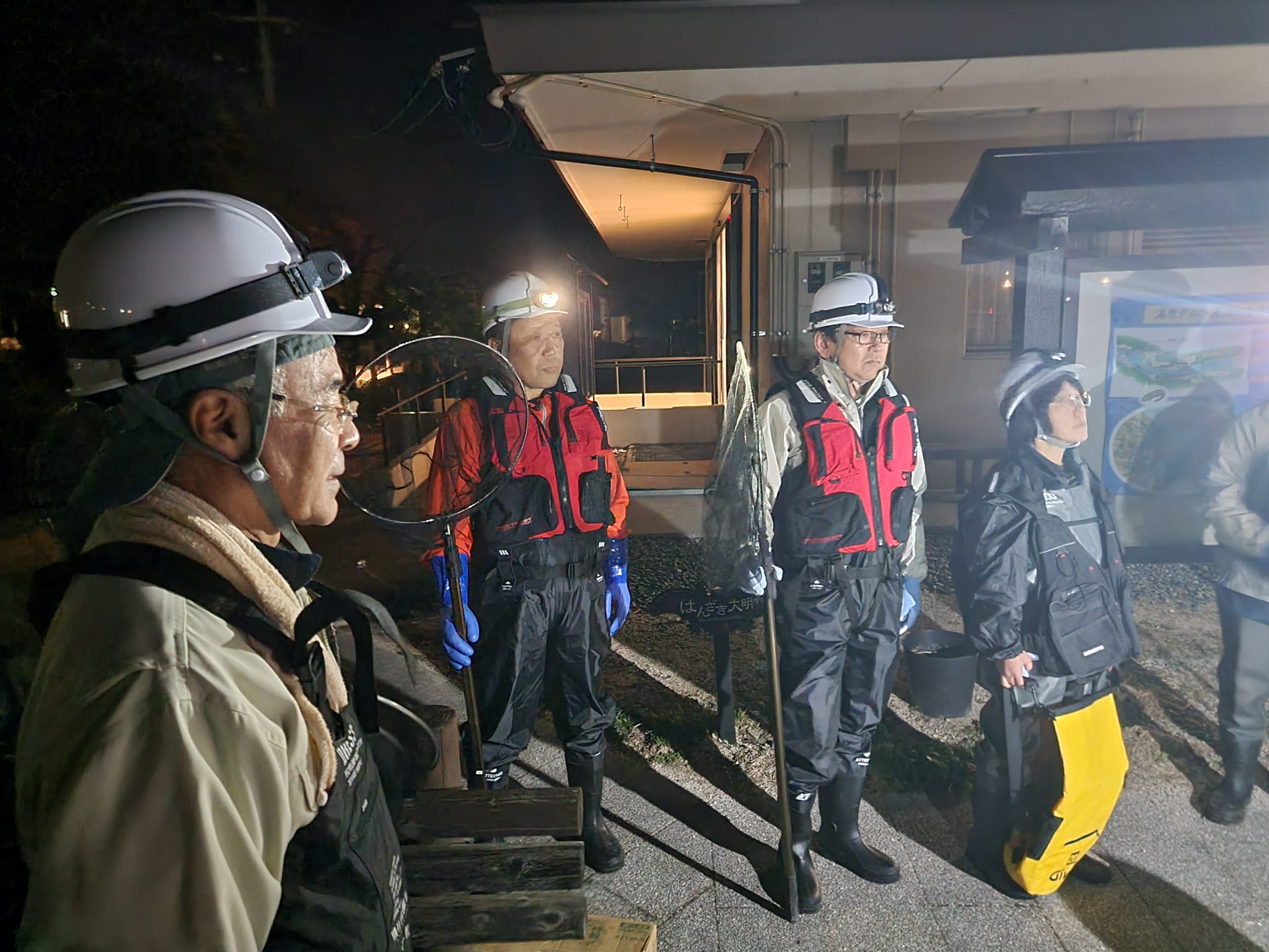 夜間に河川に入って水中を照らすとエビやカニ、魚も多く、このきれいな川を維持できるように住みたいなとも思いました。
