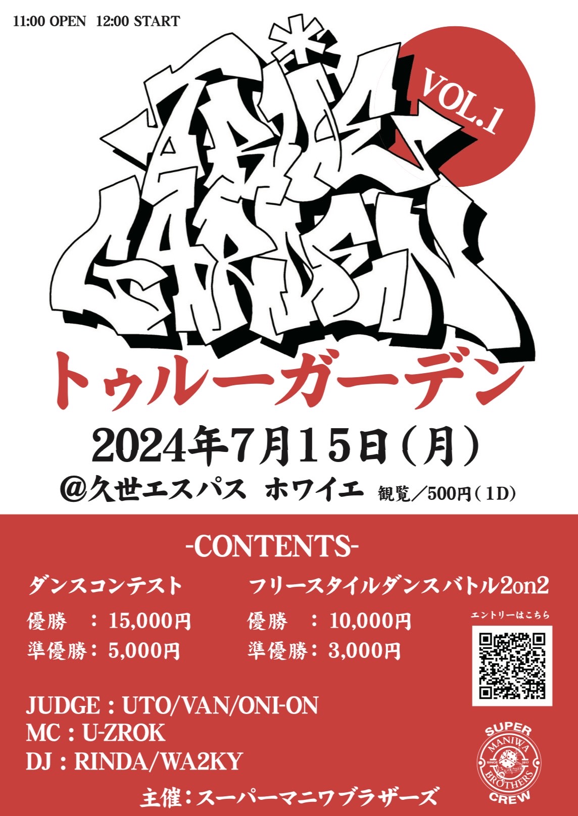 主催は僕も所属している地域のブレイクダンサーチーム『スーパーマニワブラザーズ』です。