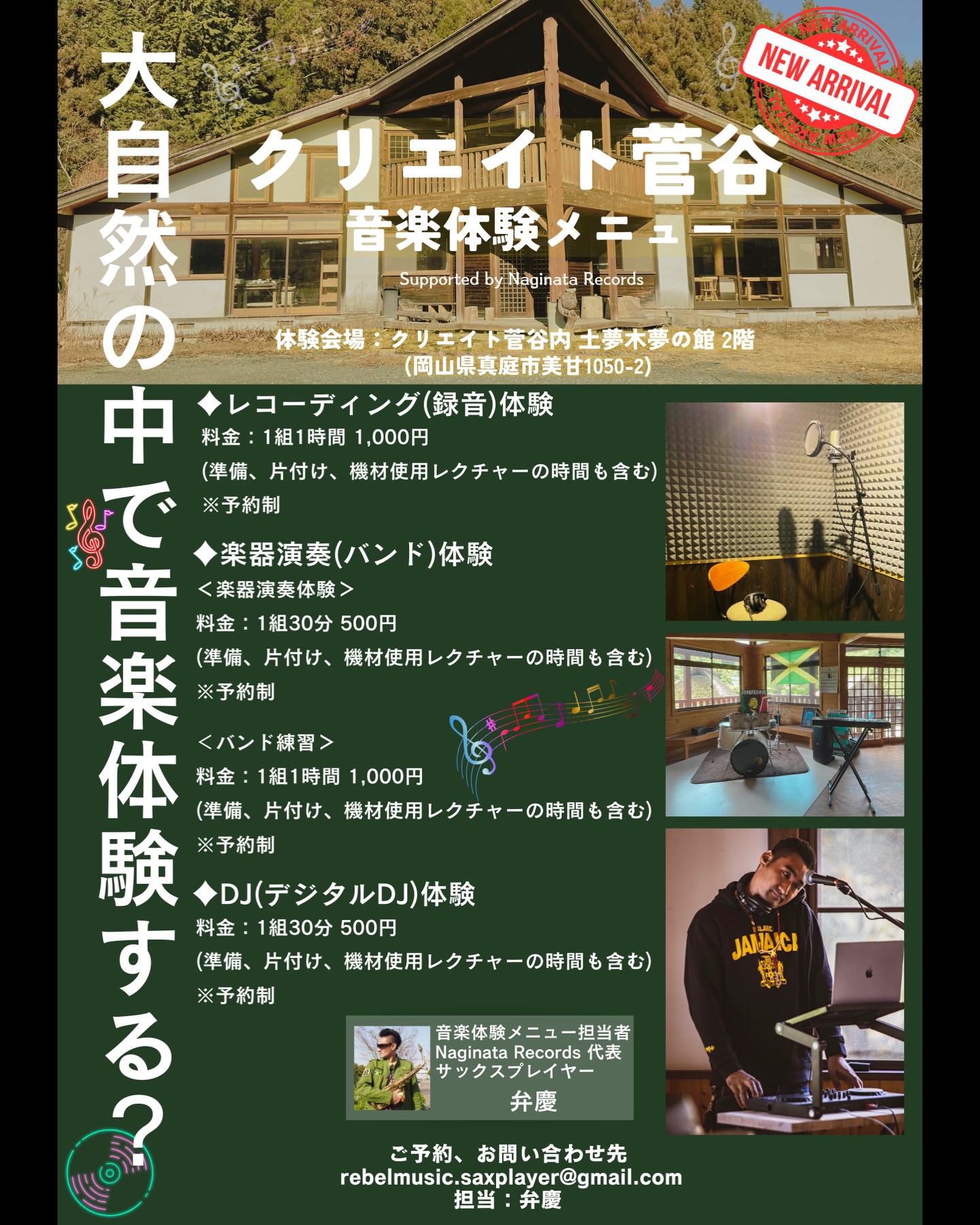 この度、岡山県真庭市美甘にある『クリエイト菅谷』で音楽体験事業をスタートさせます!