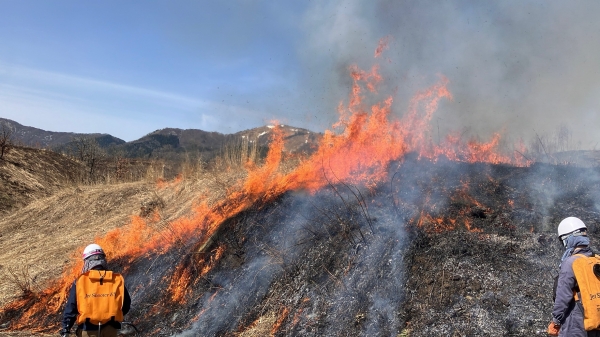 朝は気温が低く湿り気もあったものの、風向きや天候も良く順調に山焼きが進みました。