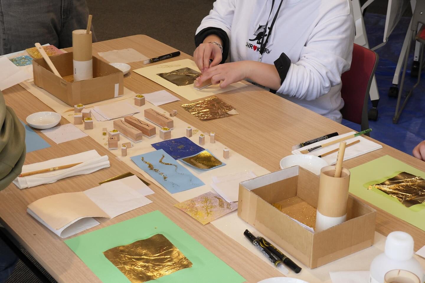 3月20日(木)に開催された「真庭ユース文化祭」にて《金箔・金砂子ワークショップ》を行いました!