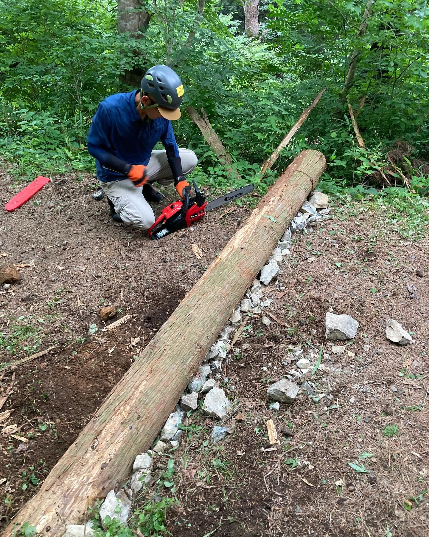 同期の大畑隊員の三平山での登山道整備活動(丸太階段の設置)に参加させて頂きました!