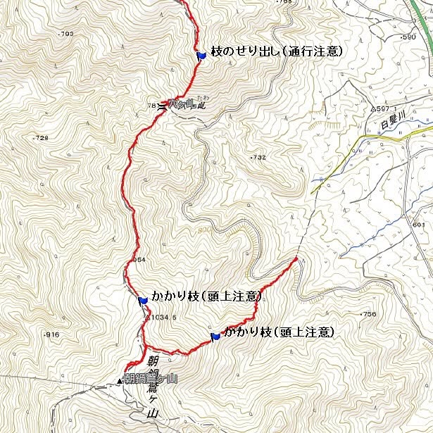 朝鍋鷲ヶ山~穴ヶ乢間で少なくとも2か所あります。
