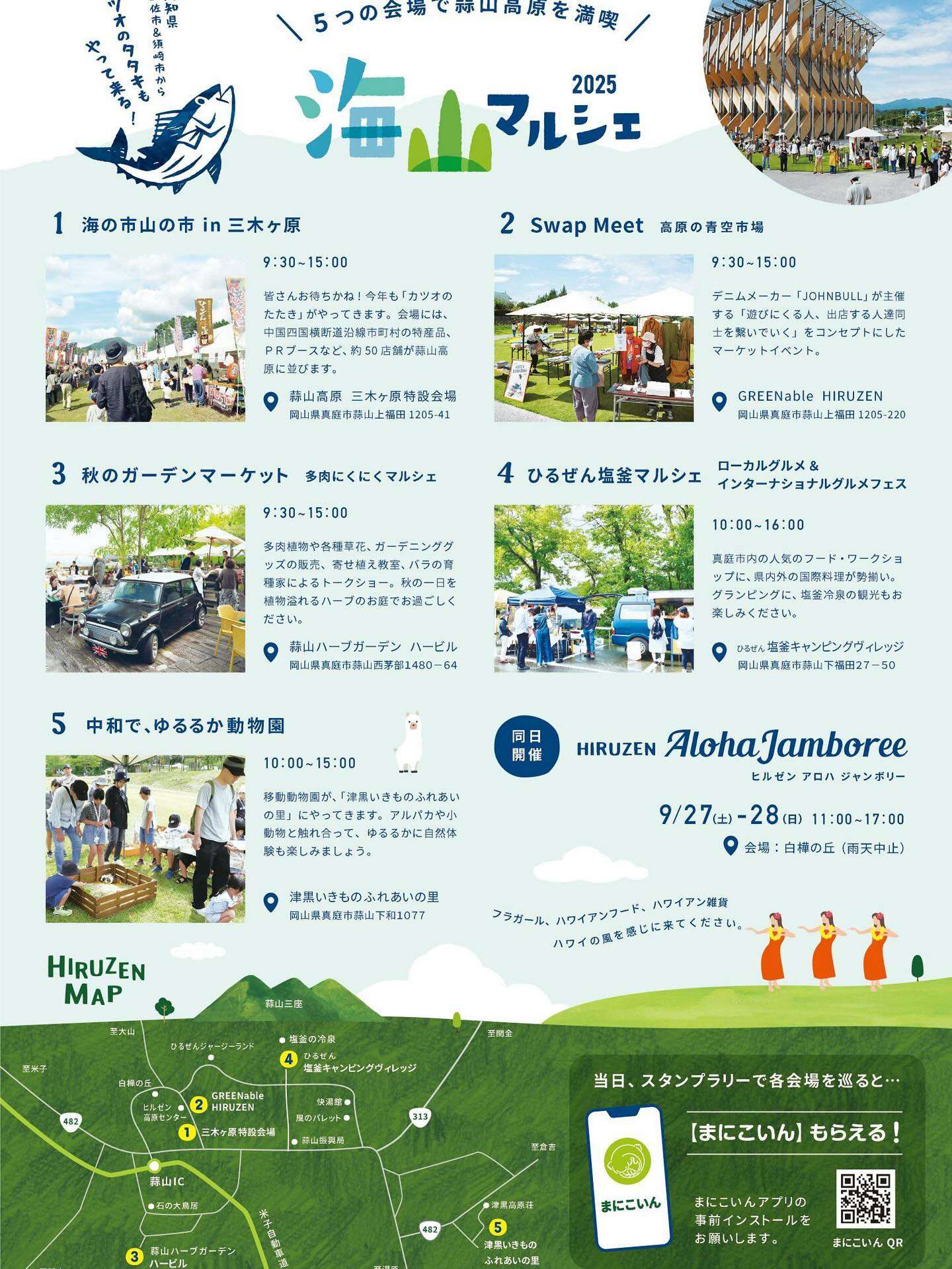 来週の9月28日(日)に「海山マルシェ〜海の市・山の市in真庭〜」が開催されます。