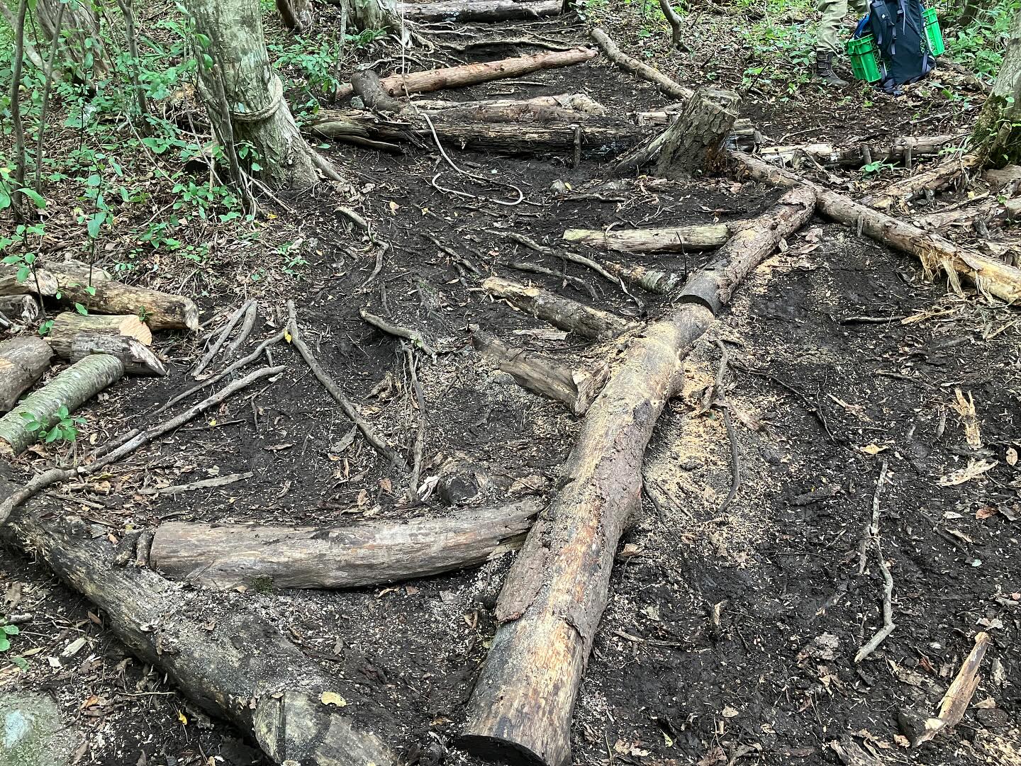 植生回復を念頭においた整備ですが、土や水を受け止める「面」を作ることで人の利用にとっても非常に歩きやすい階段となりました。