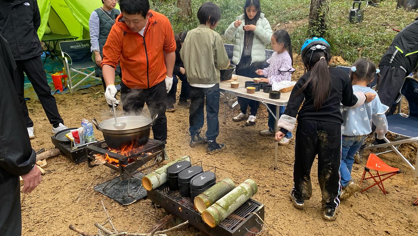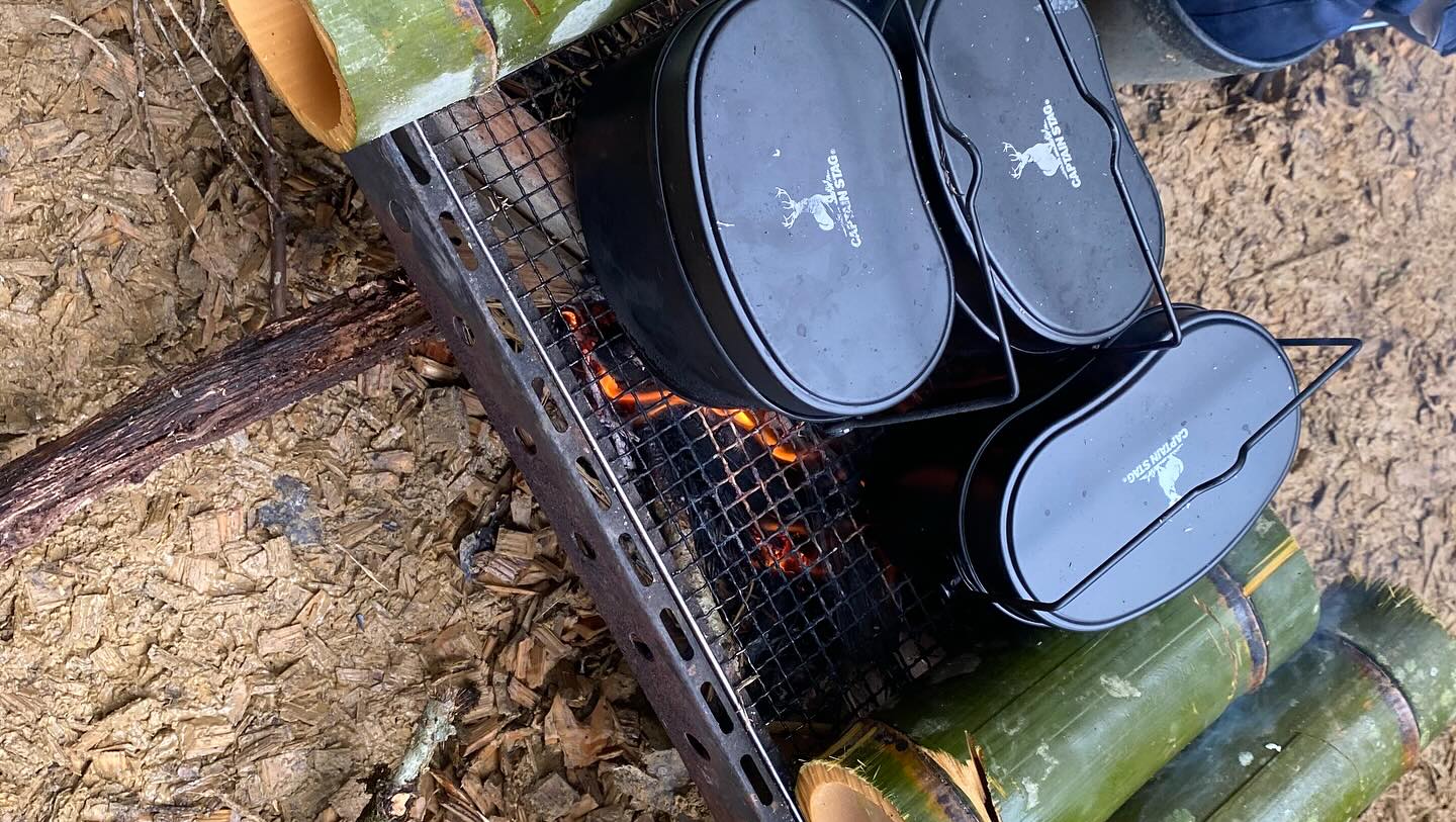 自分で伐った竹をつかってご飯を飯盒炊爨。