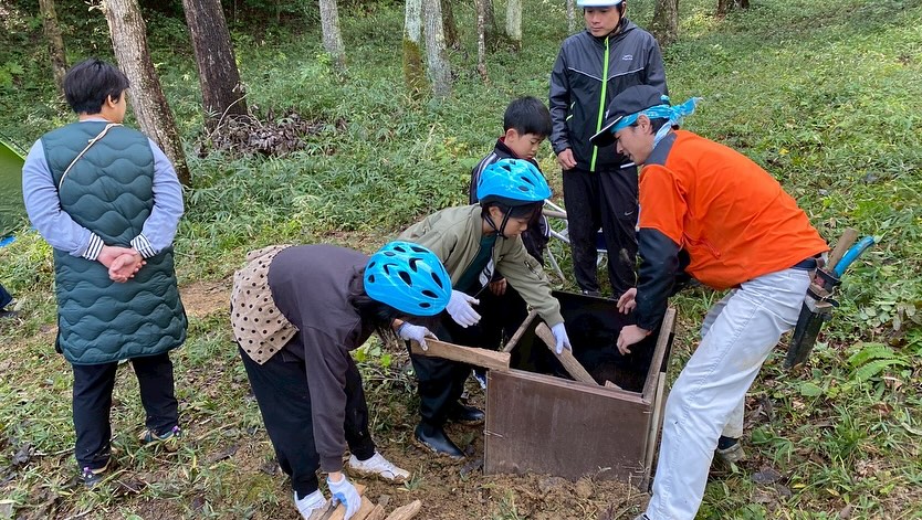 暮らしのエネルギー源であった炭を、炭焼きで作る体験。