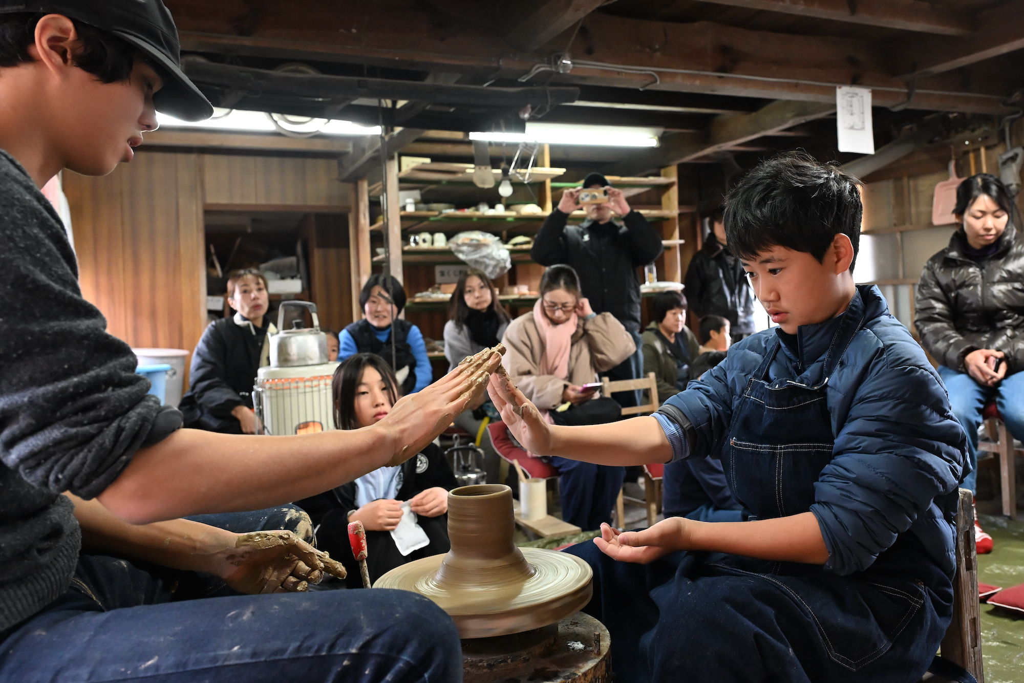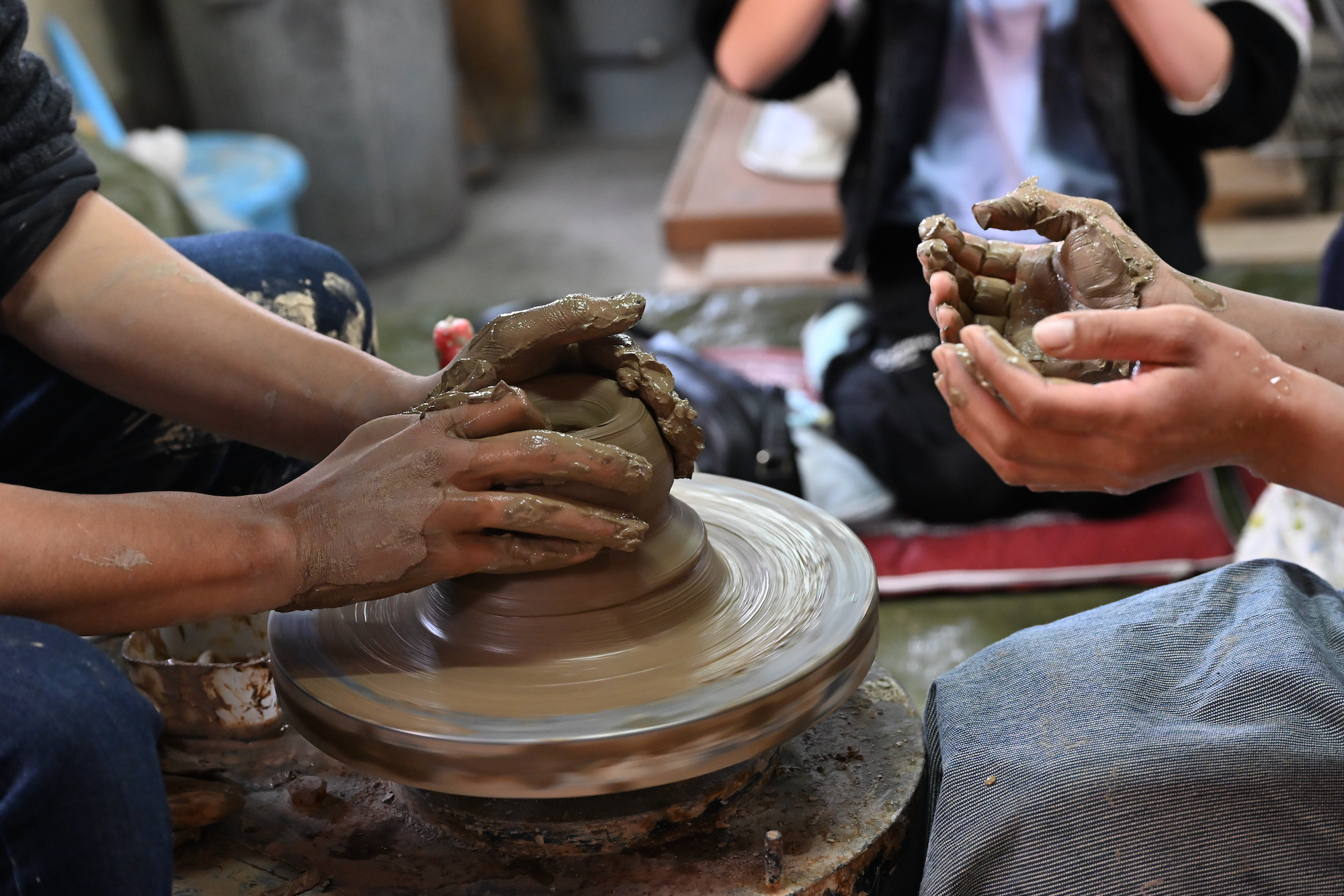陶芸体験を始める前に、まずは細見さんが土を練ったり、「土ごろし」といった作業をするのを参加者の皆さんと観察しました。