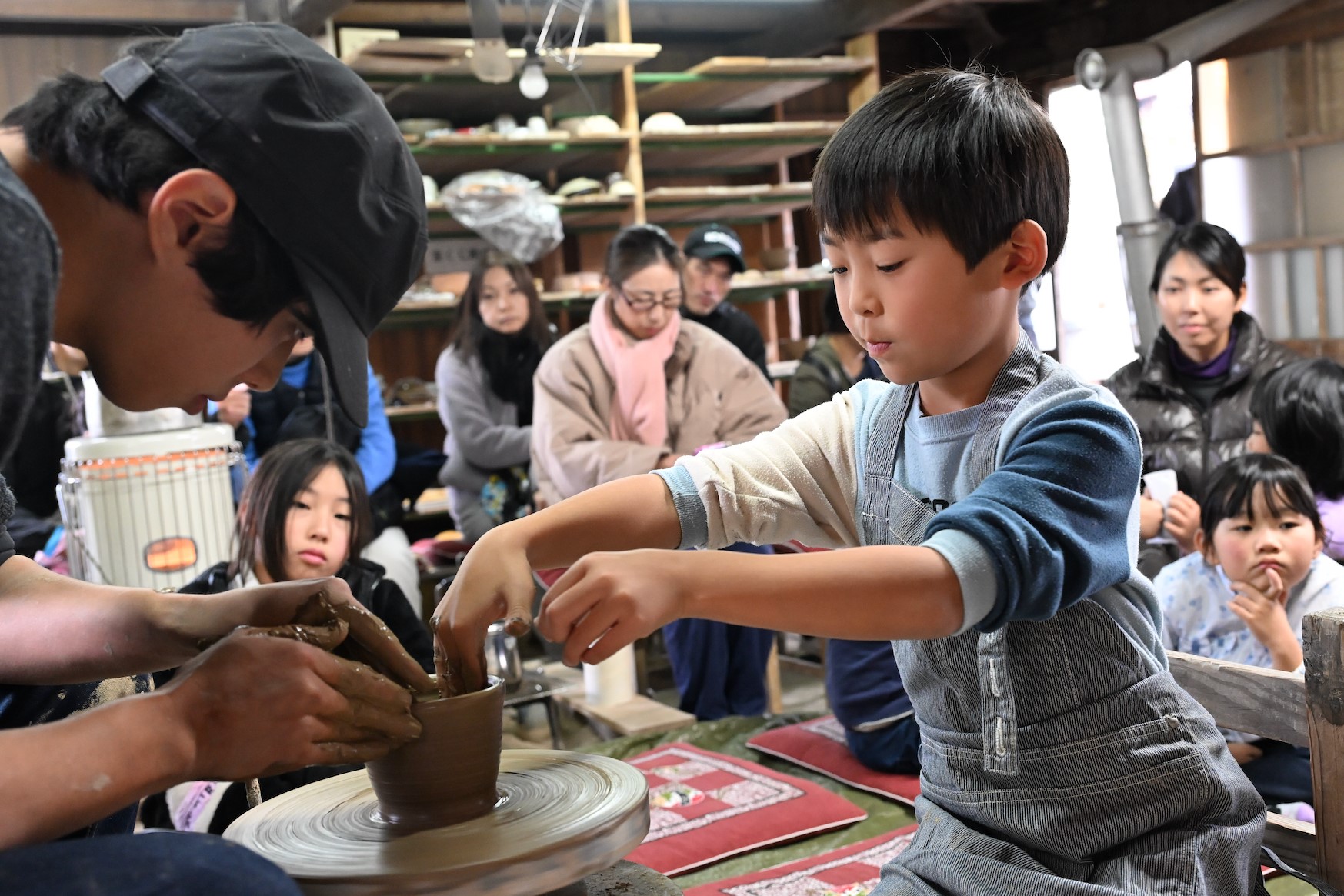 連休の最終日、11/24に蒜山の大蛇集落にある「蒜山陶芸倶楽部」にて、「ひるぜんこども陶芸体験」を実施しました。