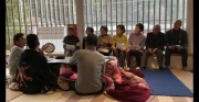 サロン活動でワイワイ活動する男