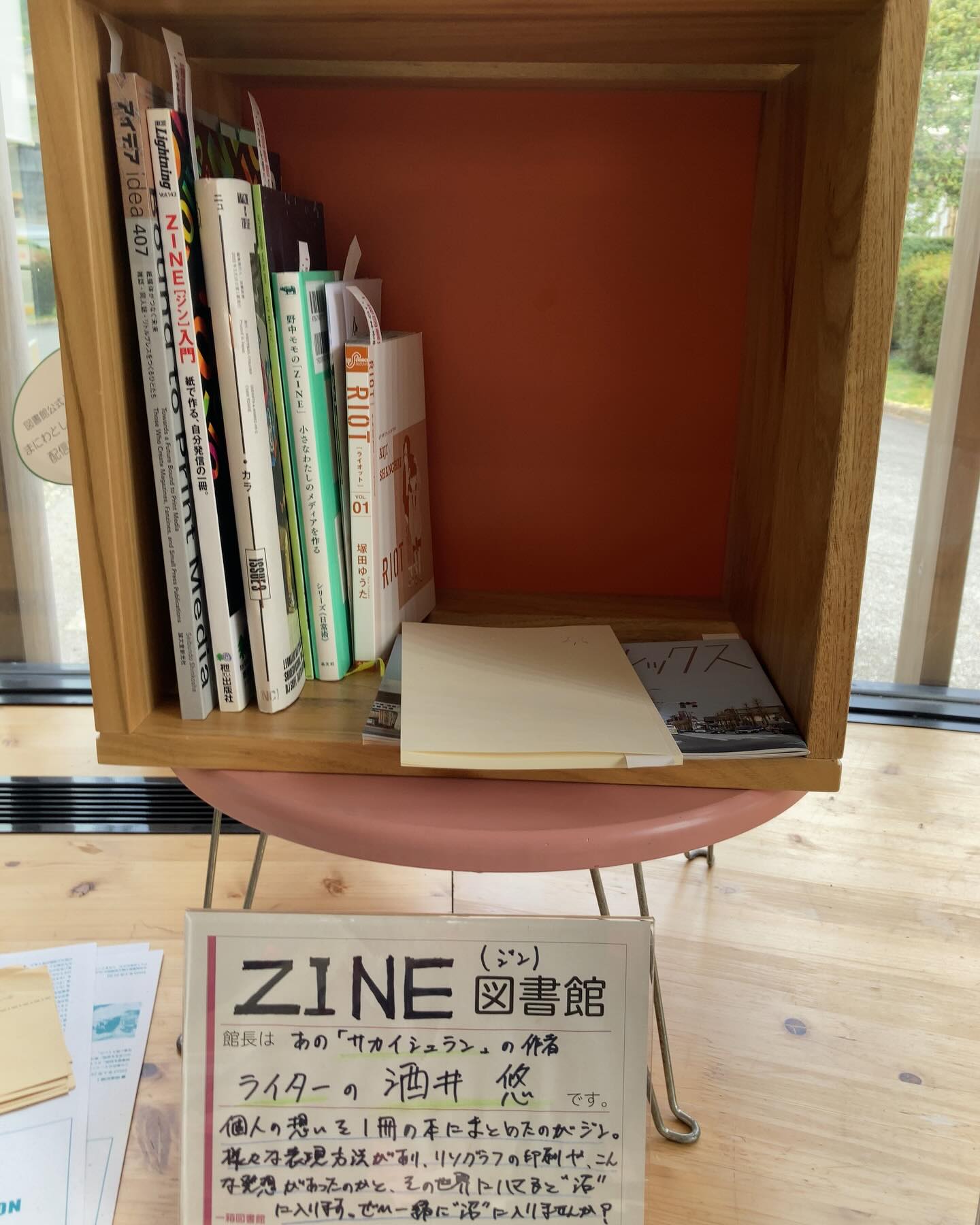 また、中央図書館が企画する「一箱図書館」の館長を拝命し、金屋用水のZINEをはじめ、サカイシュランや自分の収集したZINEを置かせていただくことにもなりました。