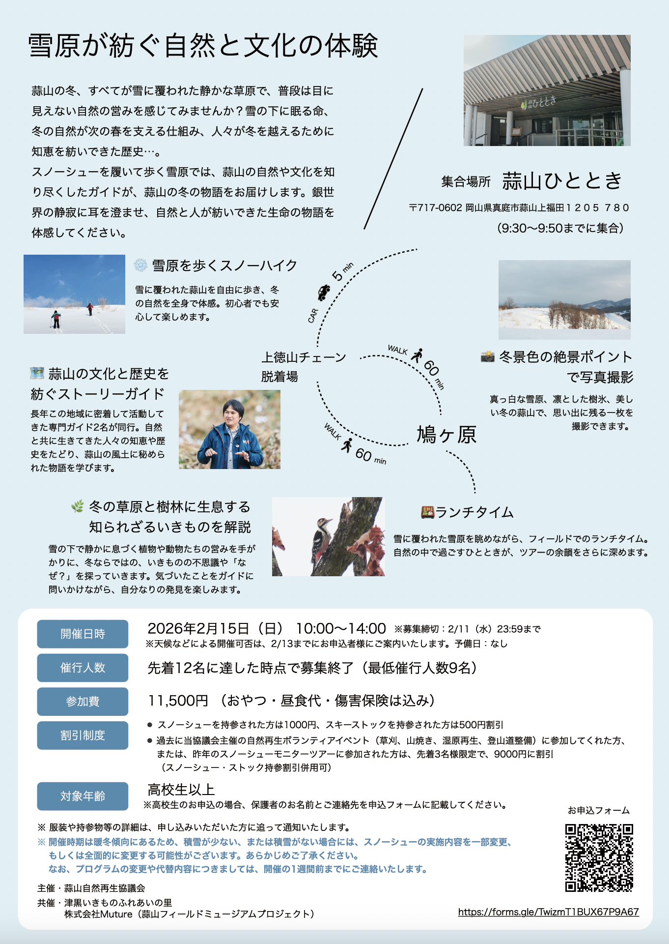 【2/15 イベント案内】冬蒜山を歩く〜雪原が紡ぐ自然と文化の体験〜【髙橋】