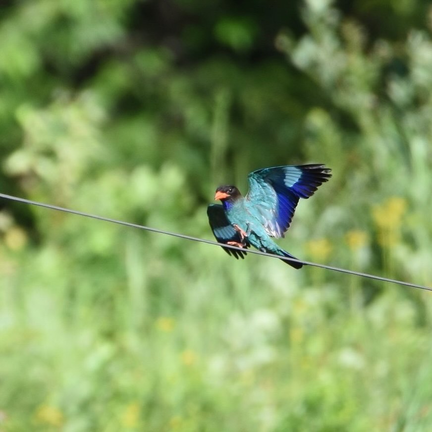 トンボやセミ、甲虫などを食べる鳥で、光沢のある羽はコバルトブルーに見えることから、「森の宝石」と呼ばれることもあります。