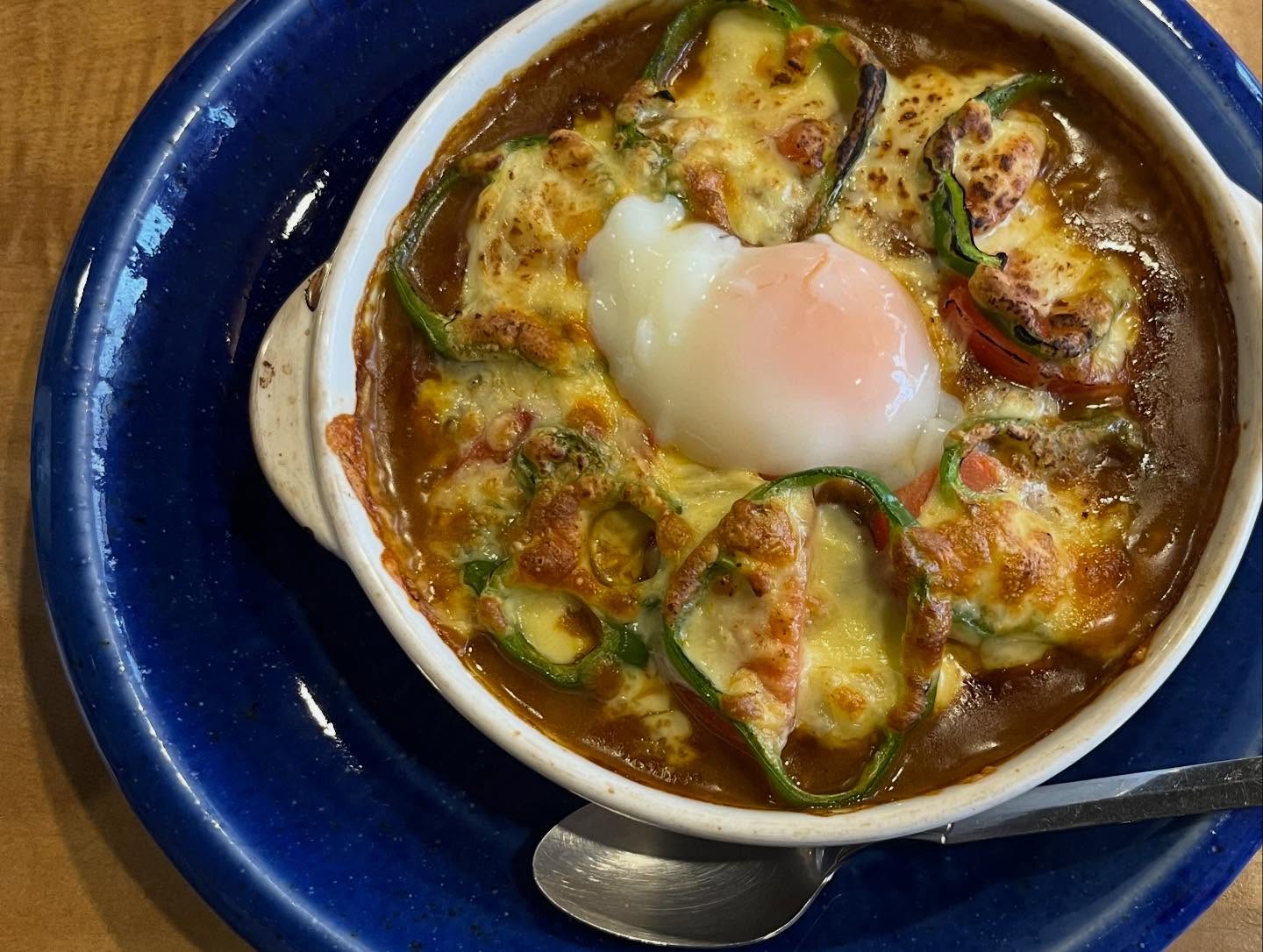 本日、人生2回目のおかもとさんのランチでは、焼きカレーをいただきました!(前回は牛鍋をいただきました)