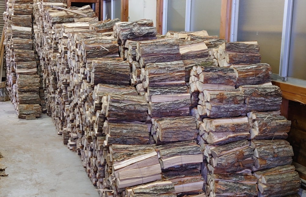 薪は、真庭市勝山の組合本所近くの倉庫に保管しています。