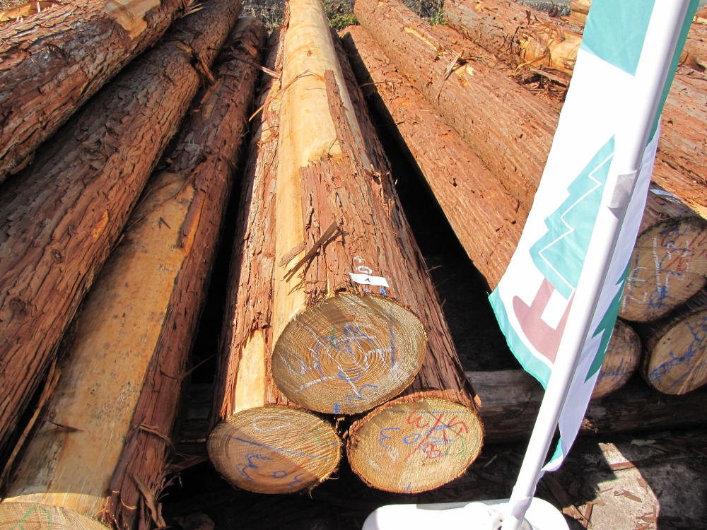 規定の長さ・直径によって並べられた木材が、セリにかけらていきます
