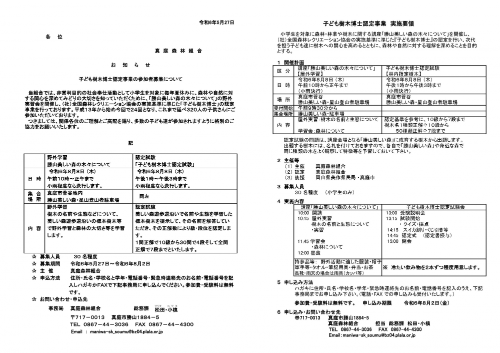 子ども樹木博士認定事業 参加者募集について【募集終了】