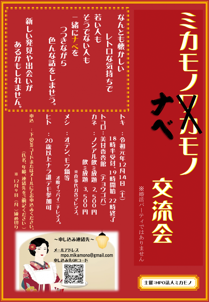 2019年12月14日土曜日18:30より、ミカモノナベモノ交流会をMicamoCafeで開催します!