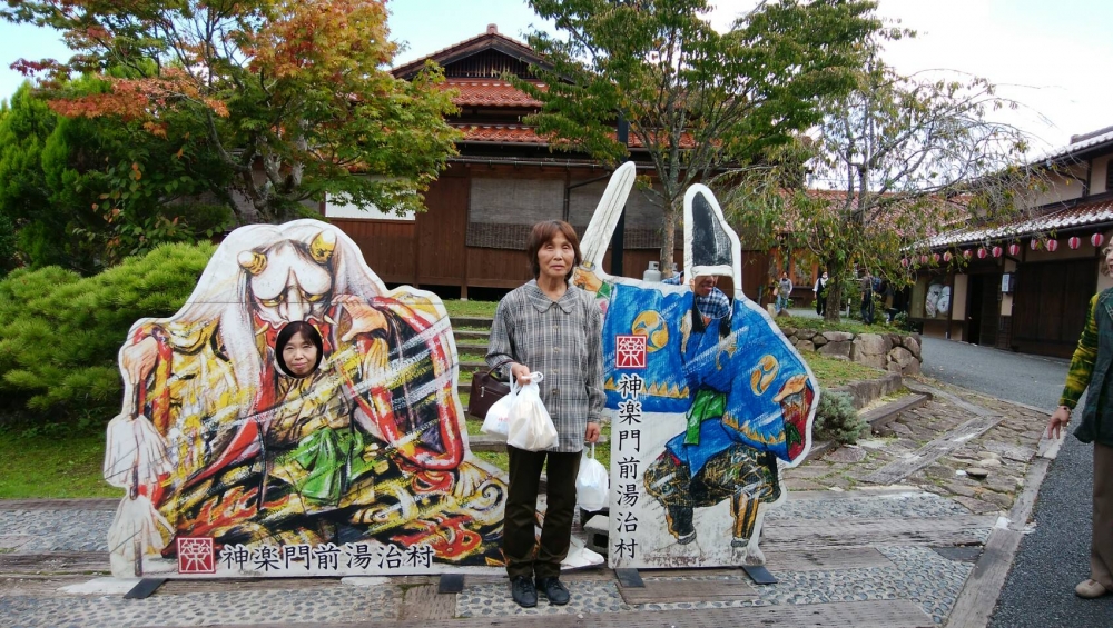 神楽門前湯治村は、お神楽施設を中心に、温泉、お食事処にカフェ、甘味、お土産処、宿泊所、なんでもそろったのーんびりゆったりできる総合施設です。