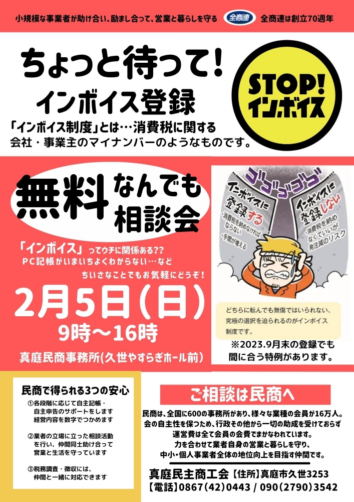 この日は、まにわ民商の役員達が無料であなたのご相談に乗ります。