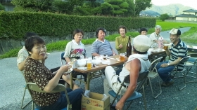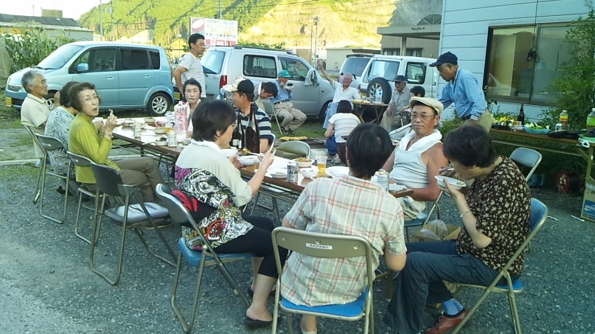 7月25日(土)午後6時から真庭民商駐車場で、共済会主催のひらめと焼き肉パーティを開きました。