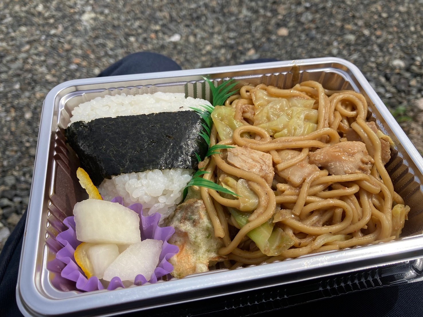 チェーン脱着場に着いた後は、地元の飲食店に用意していただいた蒜山やきそばをいただきました。