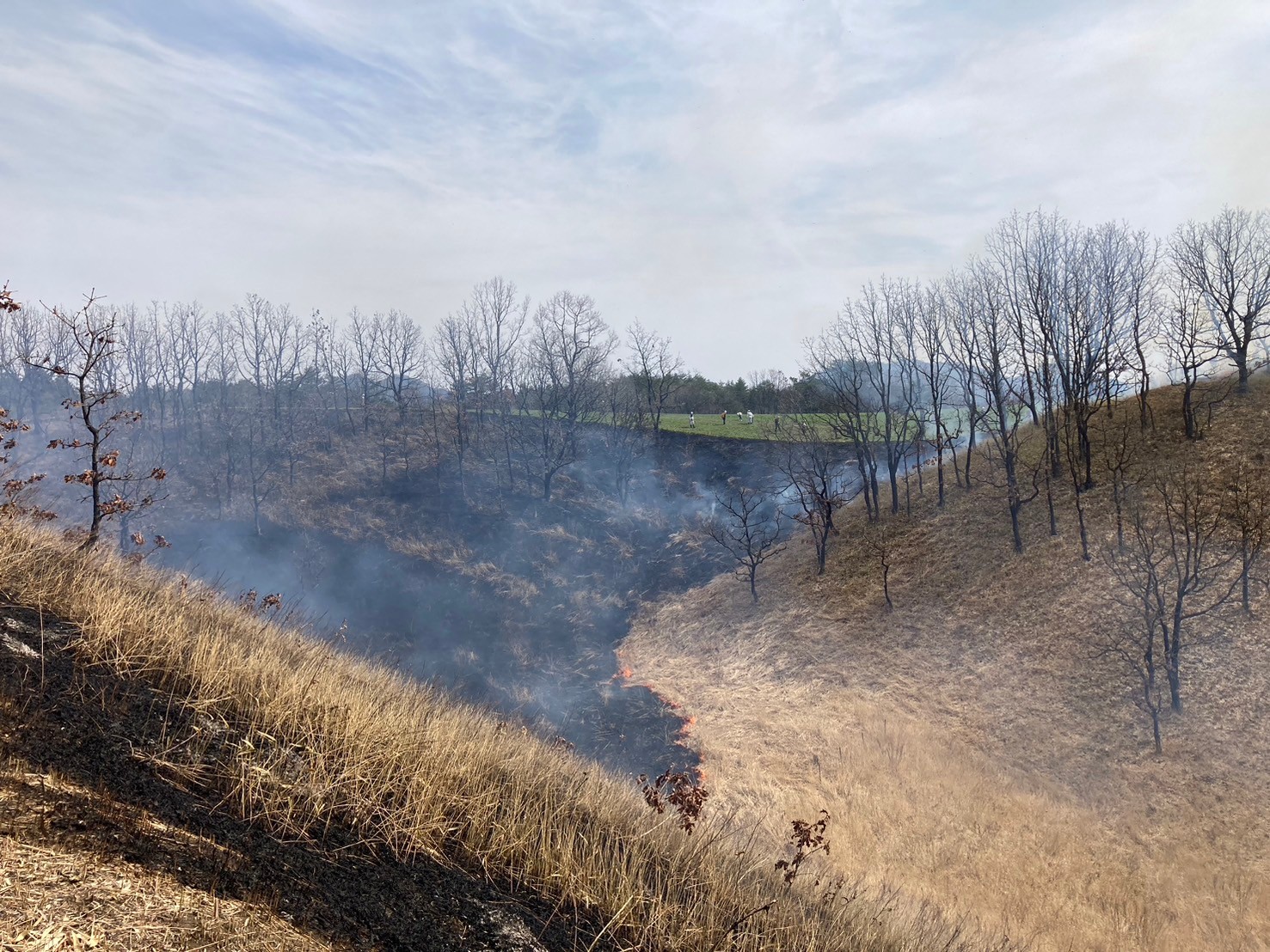 草原の大半が黒焦げになり、壮大な山焼きもいよいよ終盤。