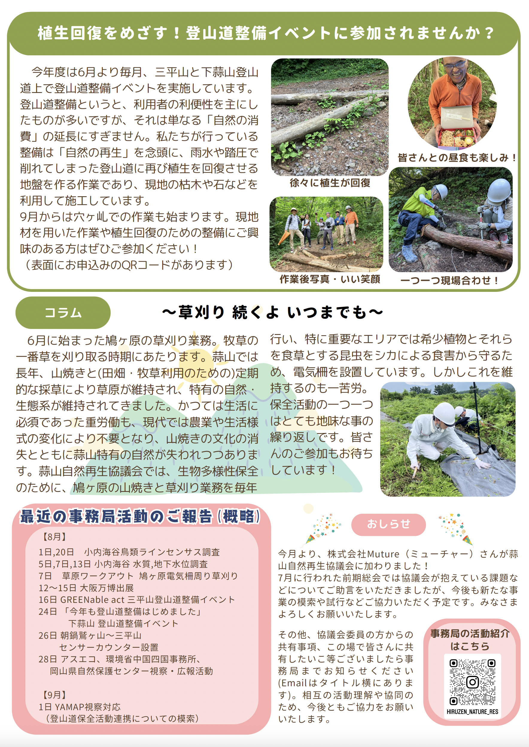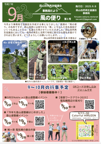 蒜山自然再生協議会においても、自然の再生と活用で、地域に爽やかな風をお届けできればと思います!