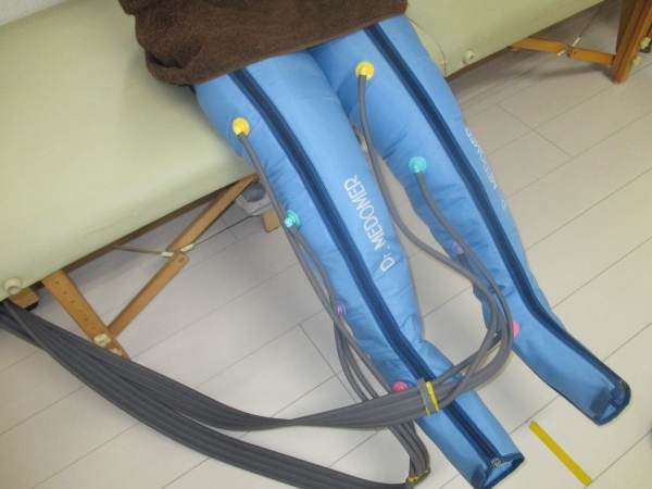 空気圧によるポンプ効果で身体に負担をかげず血行が促進され、血液とリンパ液の流れの改善、疲労回復、手足のむくみの改善をします。
